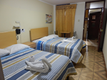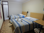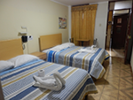 Para 3 Personas Cuenta con 2 camas (1 de 2 plazas y 1 plaza y media), totalmente confortable. Con baño privado, agua caliente, tv. Smart de 32”, Super Cable, Teléfono Anexo, Internet WiFi y Cámaras de Video Vigilancia en todos los pasillos Disponemos de 10 Habitaciones Doble Familiar Check in: 05:00 am | Check out: 01:00 pm del día siguiente. S/. 100 .00 (Precio de temporada Baja)